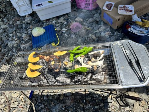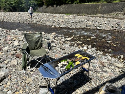 川でのBBQ